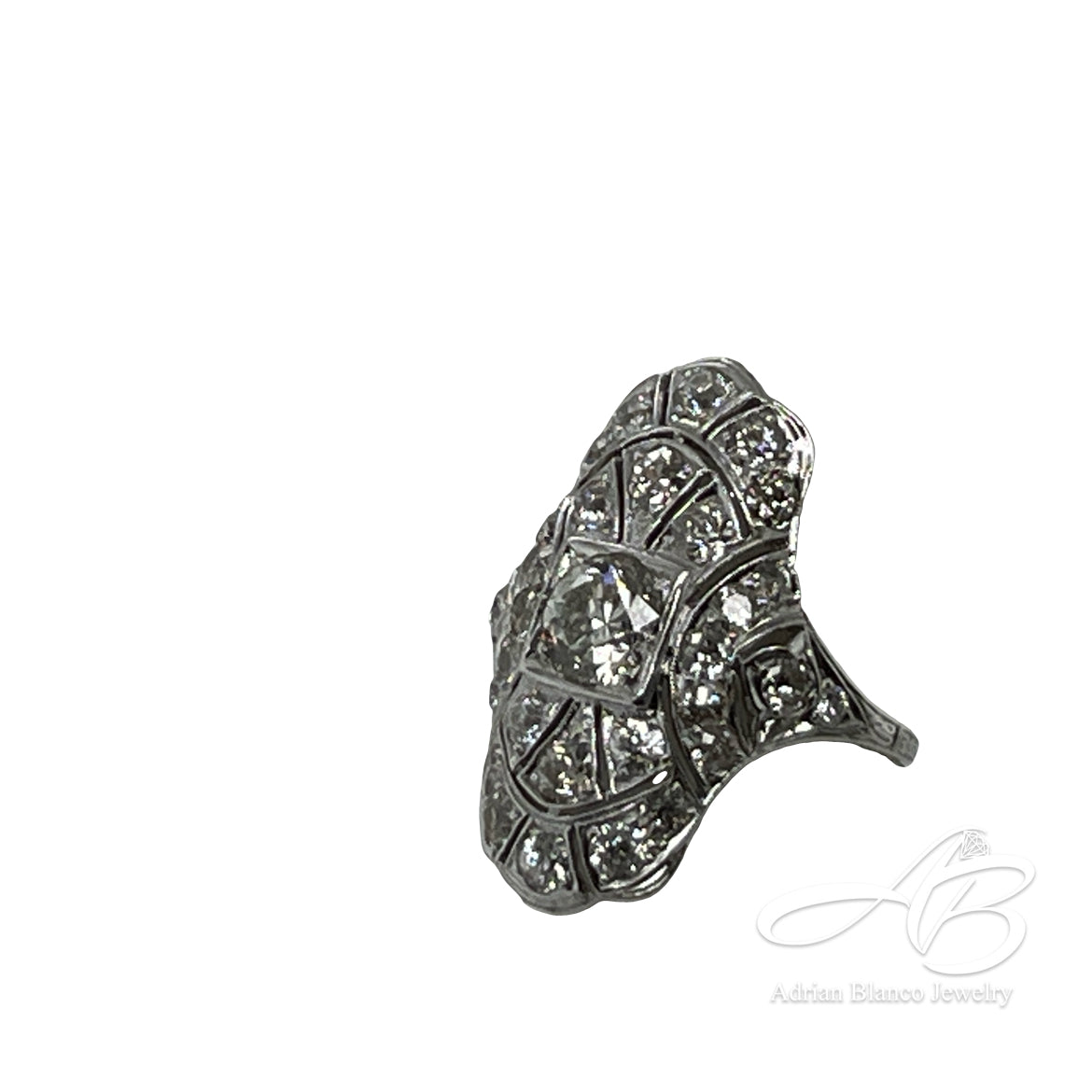 PLATINUM DIAMOND ENGAGEMENT RING WITH 3.51CT CUSHION MODIFIED BRILLIANT CUT NATURAL DIAMOND E, SI1, EX, VG, MED BLUE CENTER GIA CERT #1172025006 NO INSCRIPTION AND 2 5.2MM ROUND SIDE DIAMONDS APPROX. 0.5CT EACH. ALL 3 CENTER STONES SURROUNDED BY DIAMOND HALOS WITH 2 ROWS OF DIAMONDS DOWN SHANK AND DIAMONDS ON UNDER GALLERY. FINGER SIZE 3.0 WITH SIZING BEADS APPROX. SIZE 5.0, 11.4GR